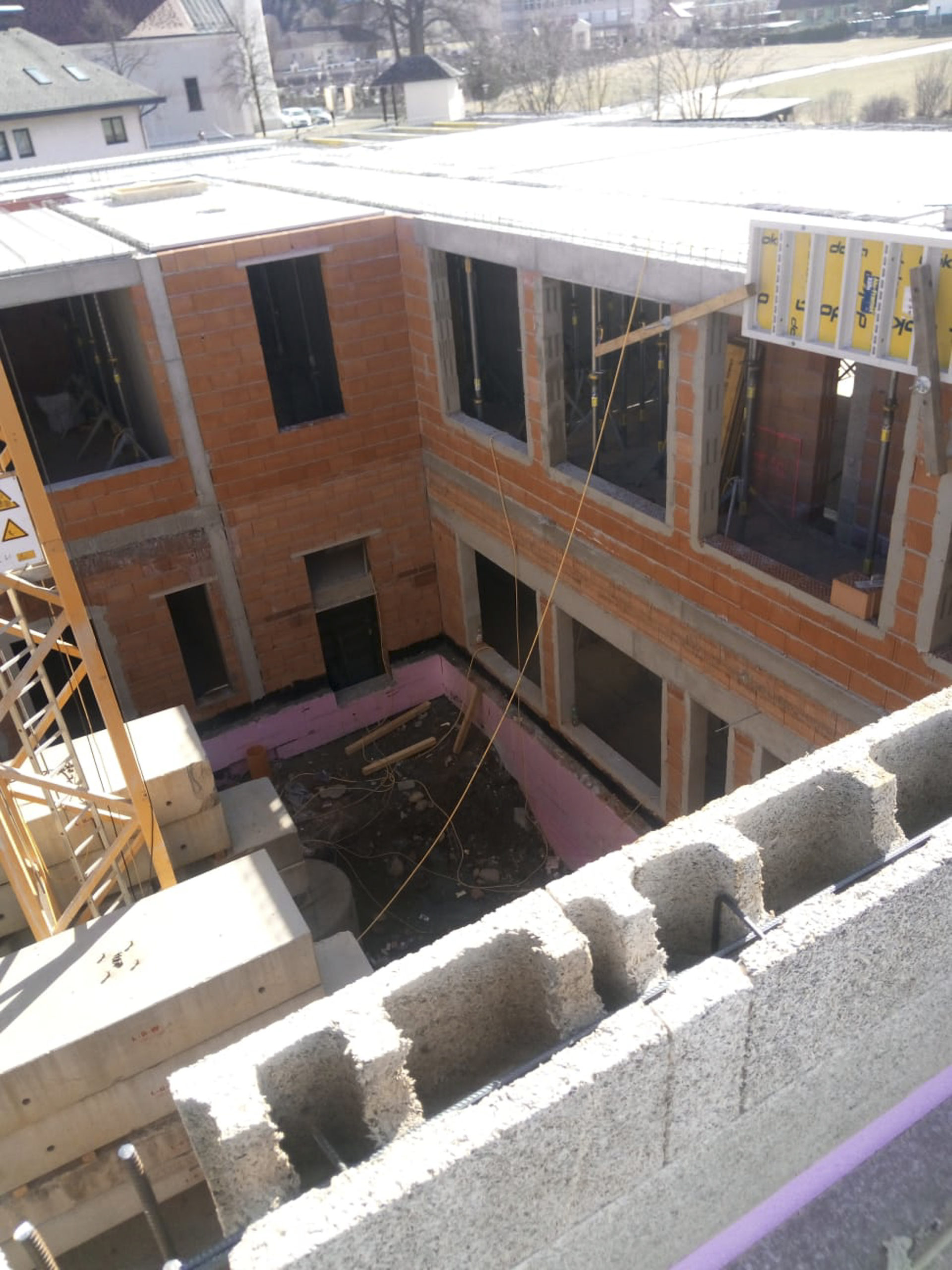 Es geht rasch voran auf unserer Baustelle und aus einzelnen Ziegelwänden sind schon Räumlichkeiten geworden.