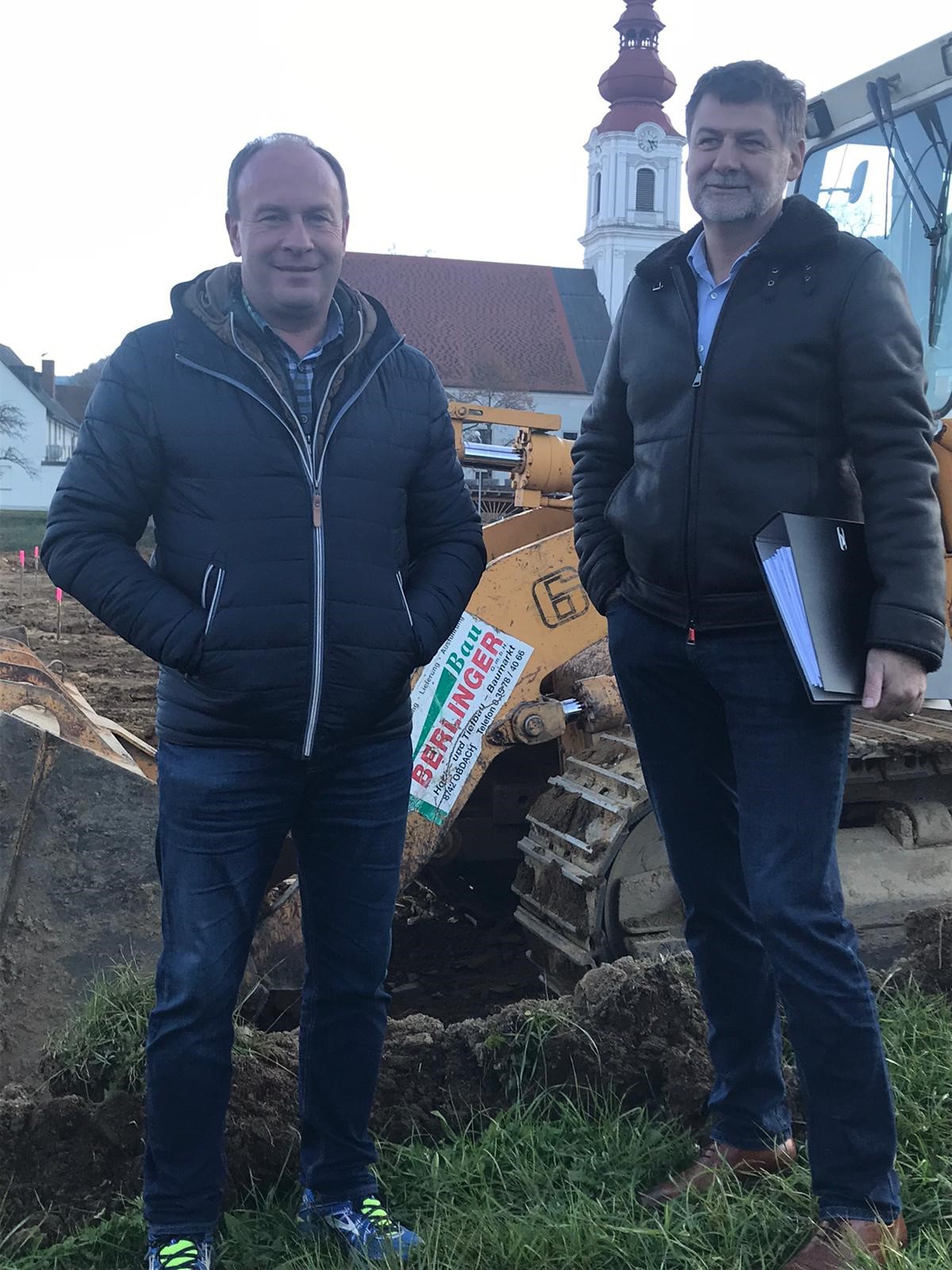 Es ist es soweit, unsere Bauplakette ist da und die ersten Baggerarbeiten für unser neues Haus „Obdach“ werden durchgeführt.