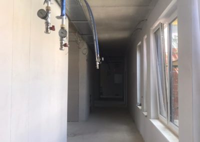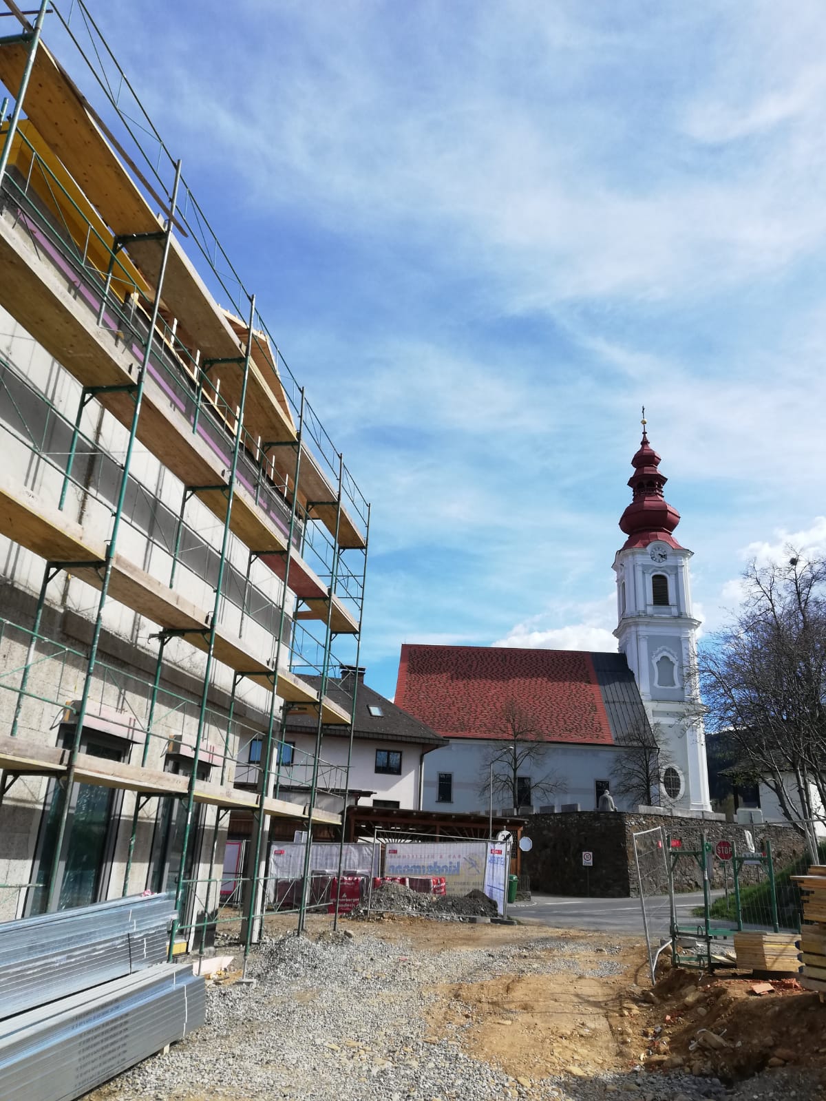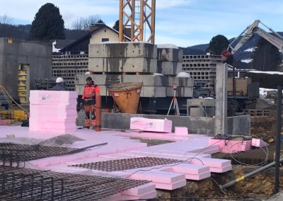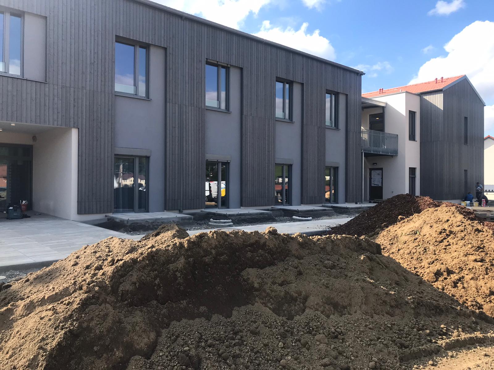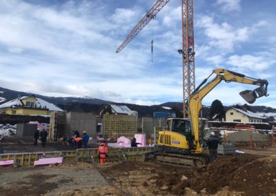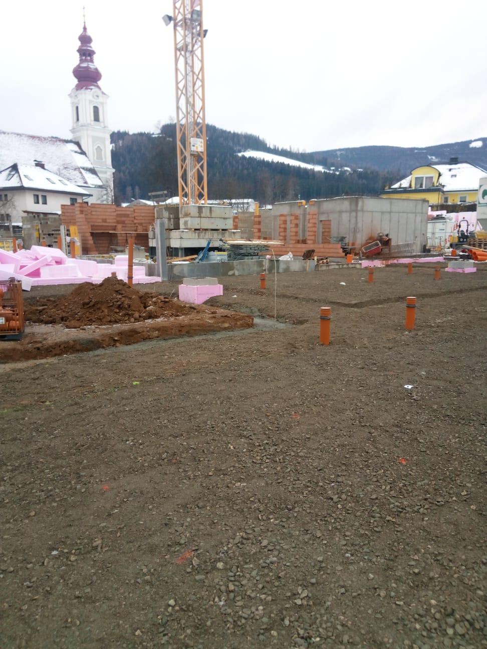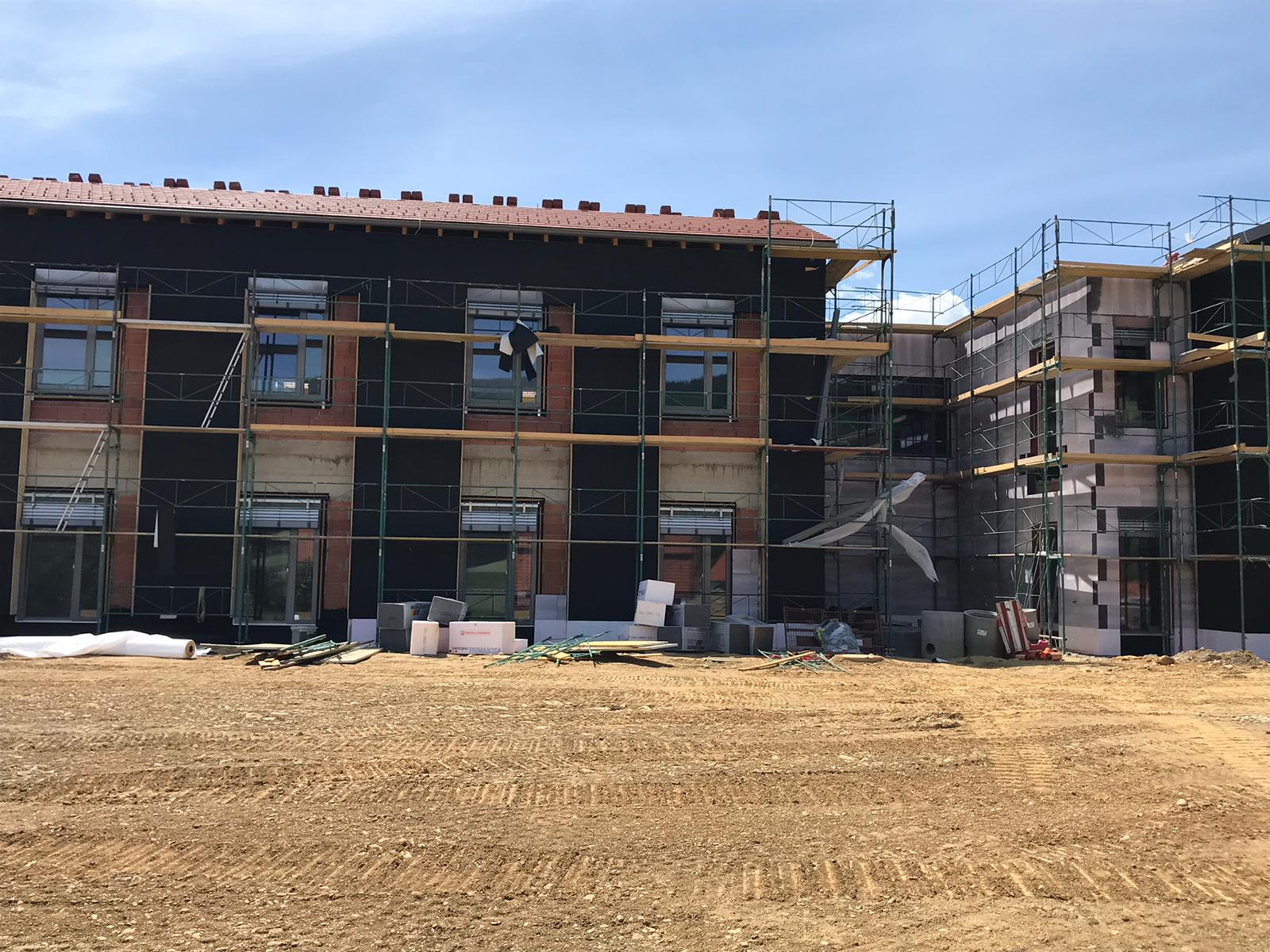 Die Außenarbeiten sind in der finalen Phase angekommen und innen werden bereits die ersten Böden verlegt.