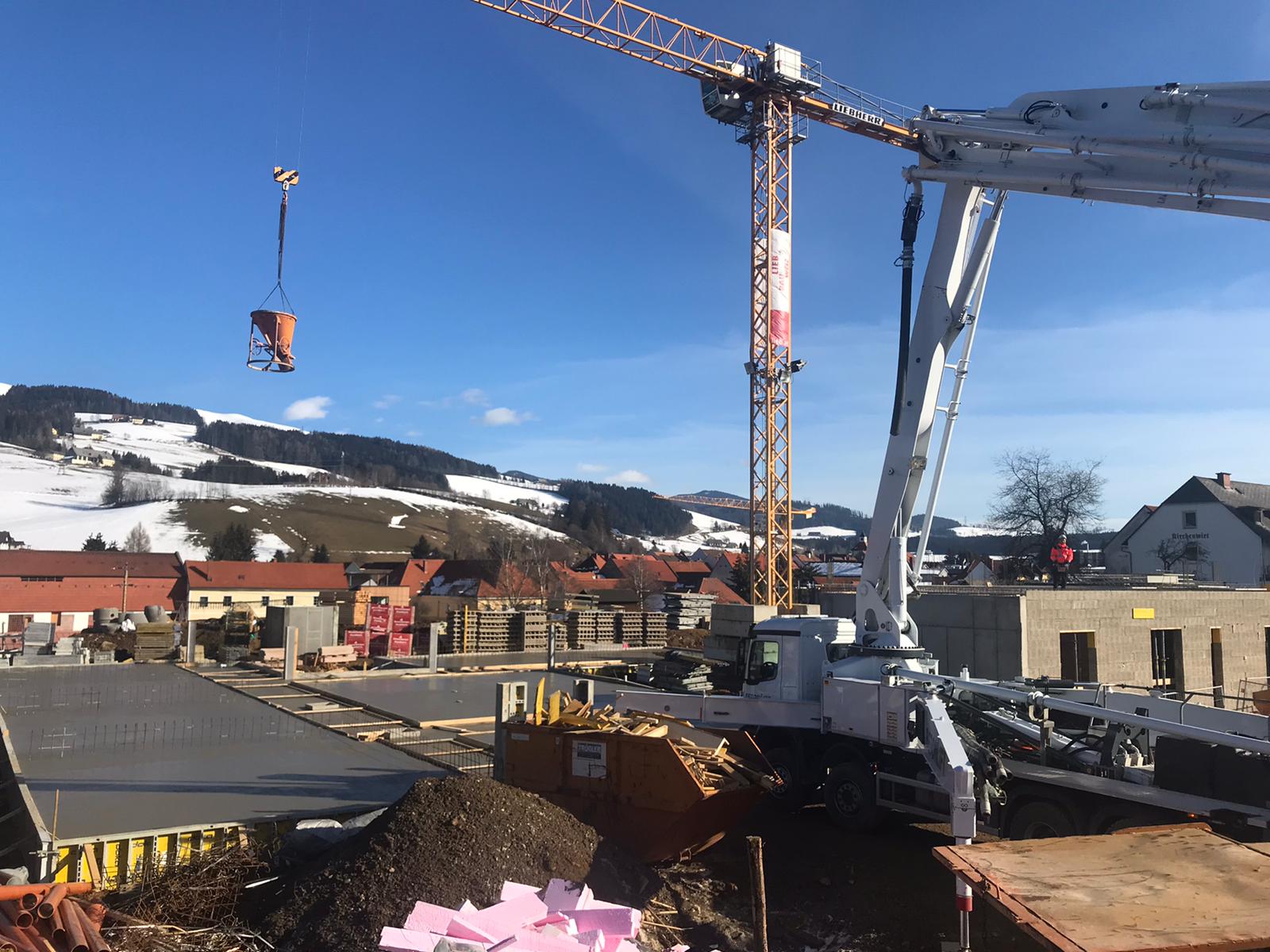 Der Winter ist angekommen mit reichlich Schnee im Gepäck und unser Haus bekommt den Beton für sein Untergeschoß.